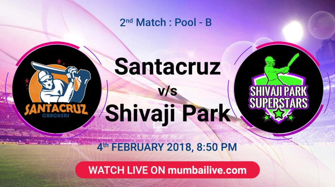 डावातील दुसऱ्याच षटकांत आशिष रावच्या (१४) रुपाने सांताक्रूझला पहिला धक्का बसला असताना रोहन सदरजोशीने एक बाजू सांभाळून धरत आपल्या संघाचा डाव सावरण्याचा प्रयत्न केला. दुसऱ्या बाजूने एकाही फलंदाजाची साथ लाभत नसताना रोहन मात्र सांताक्रूझसाठी तारणहार ठरला. त्याने ३९ चेंडूंत ८ चौकार आणि १ षटकारासह ६१ धावांची खेळी साकारली. त्यामुळे सांताक्रूझ क्रॅकर्सला १८ षटकांत ५ बाद १४७ धावा करता आल्या. शिवाजी पार्ककडून दिनेश सावंत सर्वात यशस्वी गोलंदाज ठरला. त्याने दोन विकेट्स मिळवल्या.