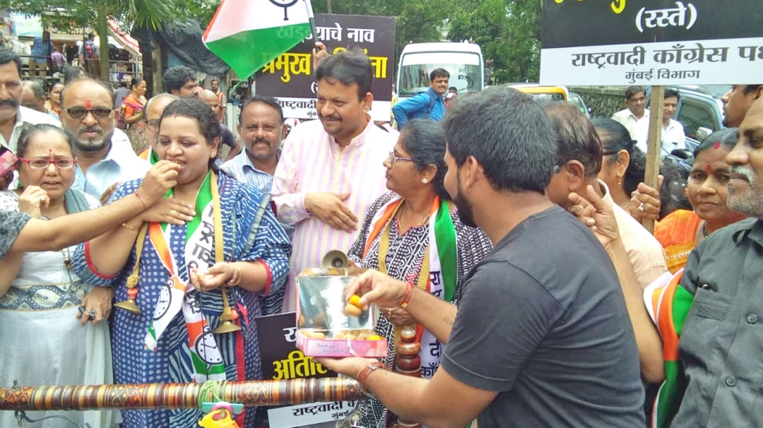 राष्ट्रवादी काँग्रेसचे मुंबई अध्यक्ष सचिन अहिर यांच्या मार्गदर्शनाखाली पक्षाच्या महापालिका गटनेत्या राखी जाधव यांच्या नेतृत्वाखाली हे आंदोलन करण्यात आलं. घाटकोपर पूर्वेकडील यशवंत शेठ जाधव मार्गावर खड्ड्यांच्या नामकरणाचा सोहळा पार पाडला. या सोहळ्यात प्रत्येक खड्डयांचं बारसं करण्यात आलं. यामध्ये महापालिका आयुक्त, महापालिका अतिरिक्त आयुक्त, प्रमुख अभियंता (रस्ते), उपप्रमुख अभियंता (रस्ते) अशी नावं ठेवण्यात आली. प्रत्येक खड्डयांभोवती पाळणा जोजावत सर्वांना पेढे वाटण्यात आले.