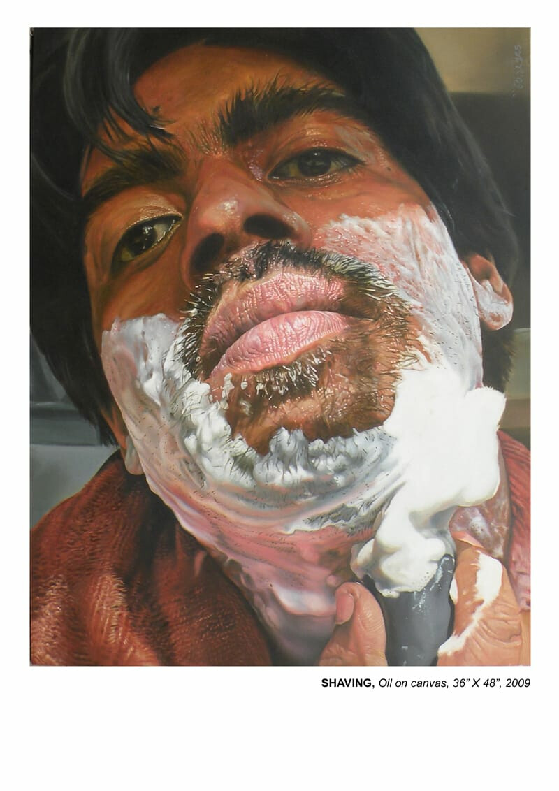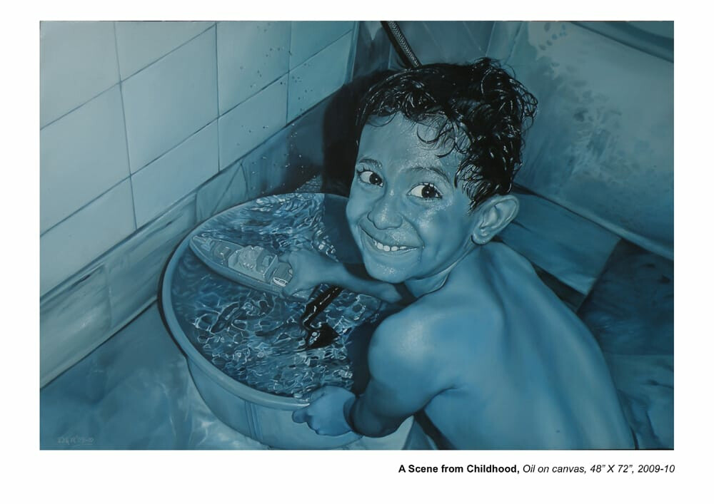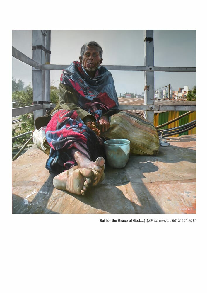 Those who are familiar with Sagar Bhowmick’s oeuvre know him to be a master of realism. From his incredibly sensitive depictions of the joys of childhood to his almost obsessively detailed contemporary still lives, he is able to combine virtuoso skill with thought-provoking content to create paintings which linger in the viewer’s mind. The body of work on display is a departure from his usual themes but very much in the tradition of analyzing and developing a motif and using it as a metaphor to articulate ideas and experiences.