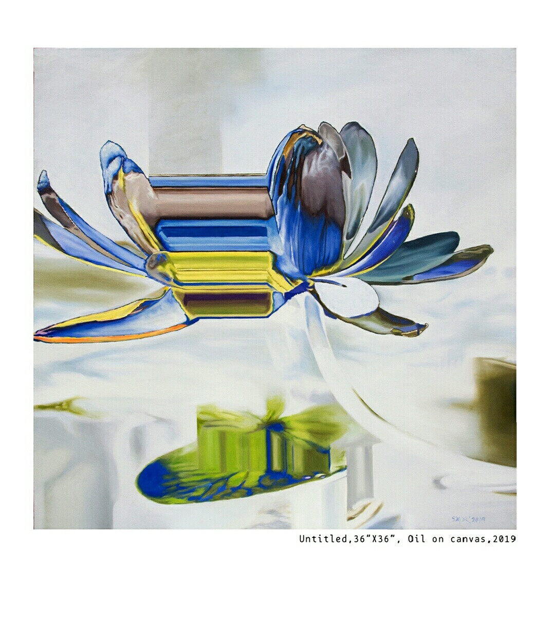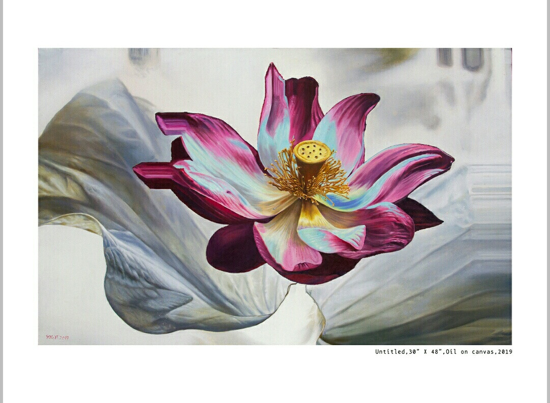 The depiction of flora in contemporary art practice is unusual and rare. What at first glance may appear repetitive and decorative is, in fact, an intuitive set of visual inquiries into the tension between the natural and artificial; the sublime and the banal; the real and the substitute. The psychedelic colours and industrial forms emphasize the fragility of natural life and humankind’s appalling ability to destroy beauty. The concretisation of flowers depicts urbanisation, global warming and climate change. The petals are filled with realistic oil colours and the background have shades of hue which in turn depicts how the flowers are losing its beauty and worse, its existence because of the global warming.