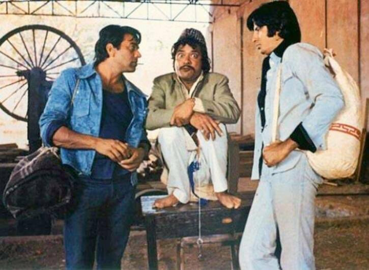Jagdeep in between Dharmendra and Amitabh Bachchan