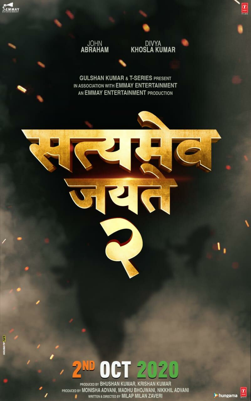 Produced by Bhushan Kumar, Krishan Kumar (T-Series), Monisha Advani, Madhu Bhojwani, Nikkhil Advani (Emmay Entertainment), Satyameva Jayate 2 will release on October 2, 2020.