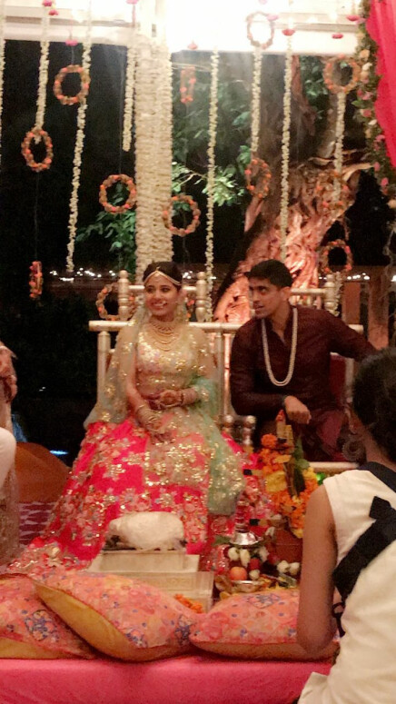 Shweta looked stunning on her wedding day in a customised dress from ‘Papa Don't Preach’. The wedding's theme which was designed by Devika Narain depicted their love story. The couple will be hosting a pool and pajama party on Saturday.