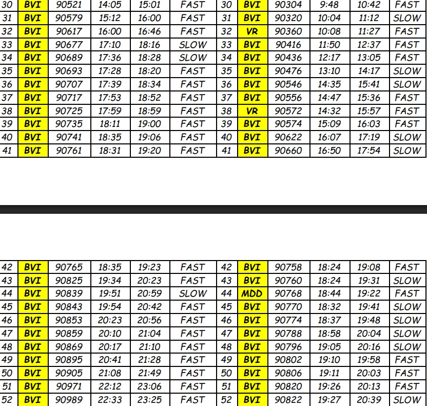 DATE | UP TRAINS | DOWN TRAINS | TOTAL |