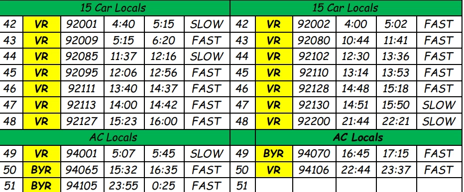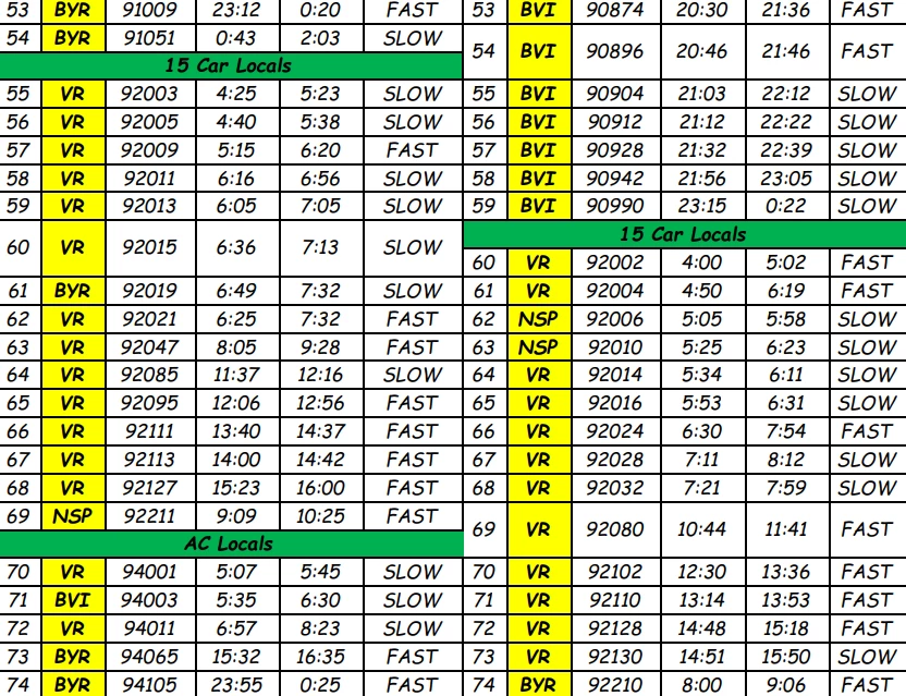 In addition to this, several long distance trains will also be rescheduled, and short terminated/originated.