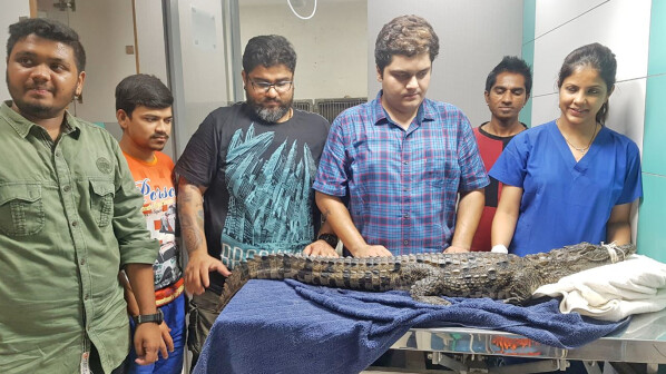 The rescue operation lasted till 1:00 am on Monday after which the crocodile was taken to wildlife veterinarian Dr. Rina Dev for Medical examination purpose. Dr. Rina declared it fit and identified the crocodile as a Male Marsh Crocodile who was 5 to 6 years old and weighed 8.8 kgs.