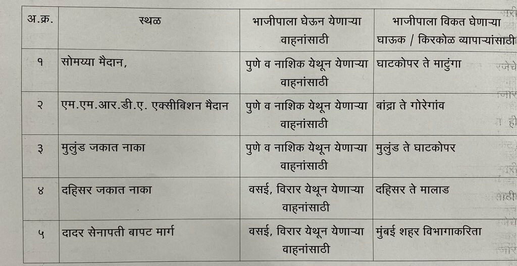 Meanwhile, vegetable vendors coming from between Mulund and Ghatkopar will have to go to the Mulund octroi Naka.