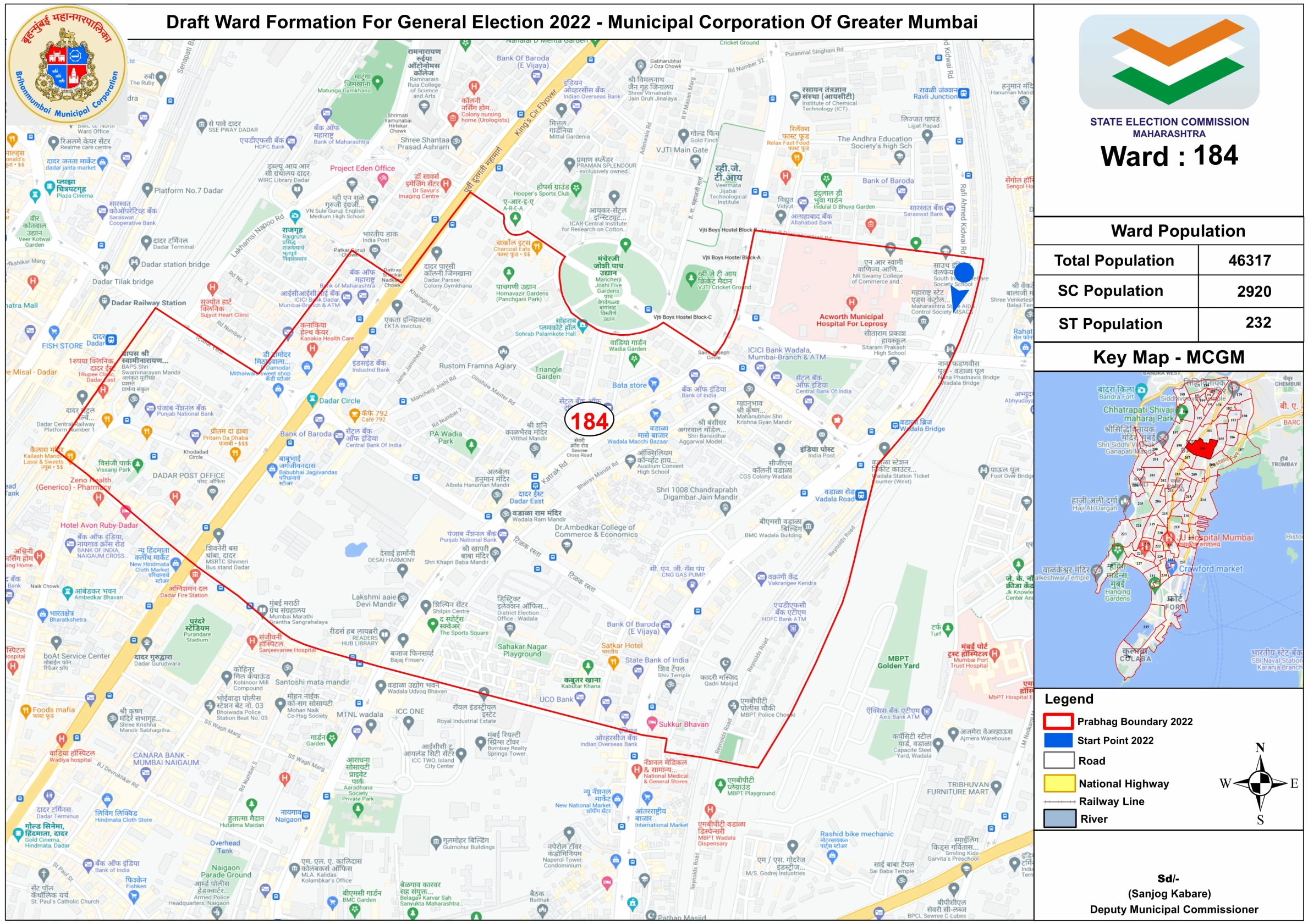 Ward No. 184 (Pachgani Udyan, Kanakia Health Care, Dadar Post Office, Pigeon Khana, Wadala Road, Sitaram Prakash High School and surrounding areas)