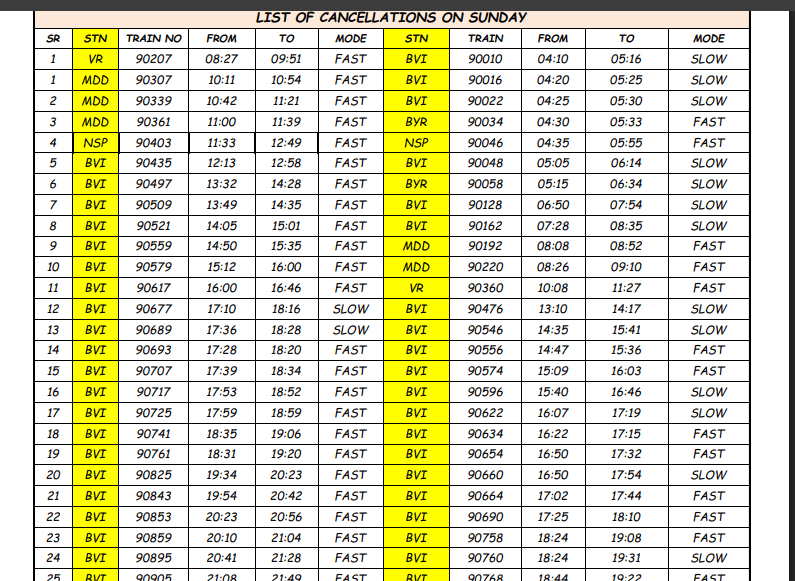 On Saturday, April 26, 2025 around 73 suburban services will remain cancelled while on Sunday, April 27, 2025, around 90 suburban services will remain cancelled. Check the list here:
