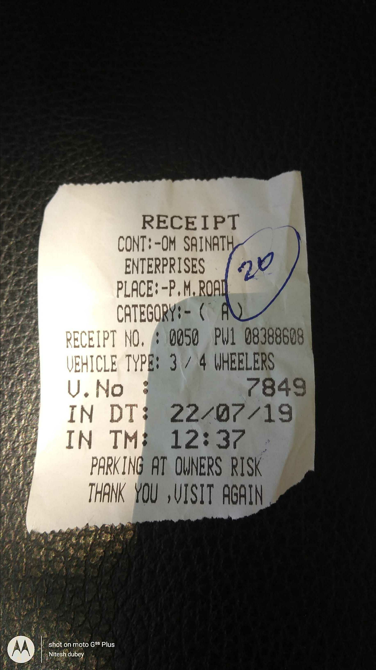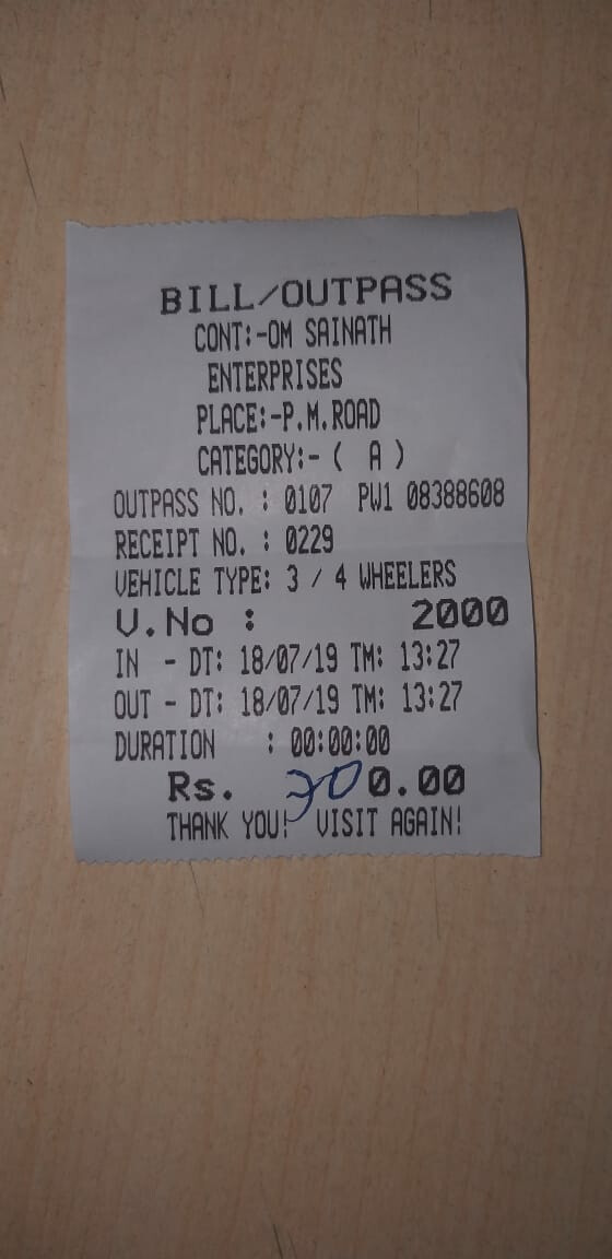 For instance, the parking lot situated at Fort's P.M. Road is allotted to Om Sainath Enterprises. As per the BMC rules, if you park at a public parking spot, the printed bill consists of all details including the parking charge. However, the parking bill at P.M. Road is provided to the consumers with the amount inscribed with the pen.