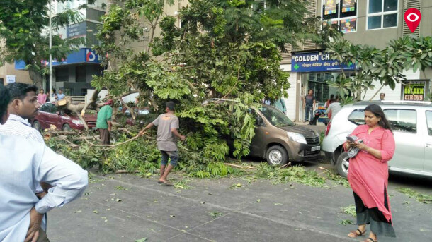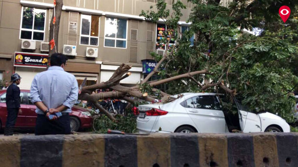 Just before the rains hit the city, trees have begun to collapse. On Monday evening, a tree falls and damages three cars in the process on Gokhale Road, Prabhadevi. Luckily, not a single person was harmed during the incident. The cars took some hammering though.