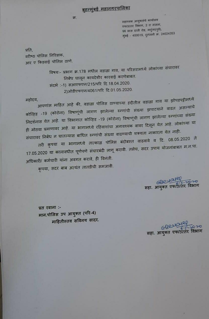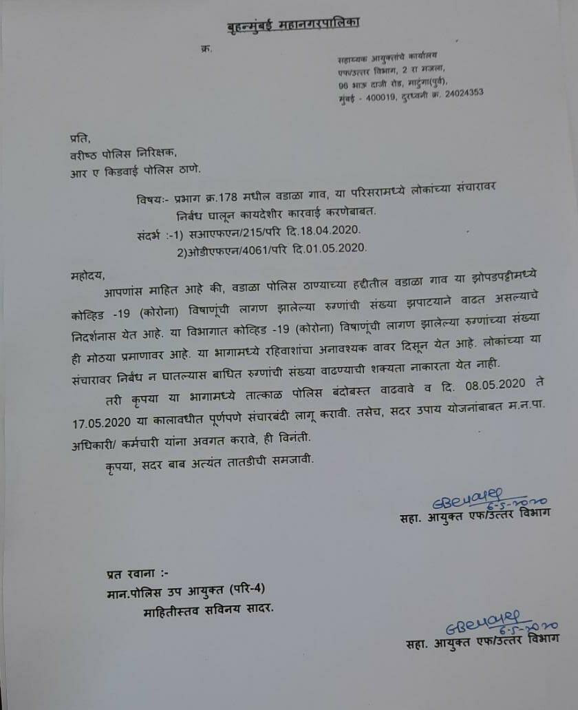Looking at the gravity of the situation, Assistant Commissioner Bellale has written to Wadala Police asking them to take action against non-compliant residents that flout the total shutdown regulations. He told the police officers that the matter was of 'extreme urgency'.