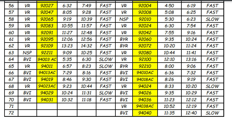 Here's the list of trains to be affected: