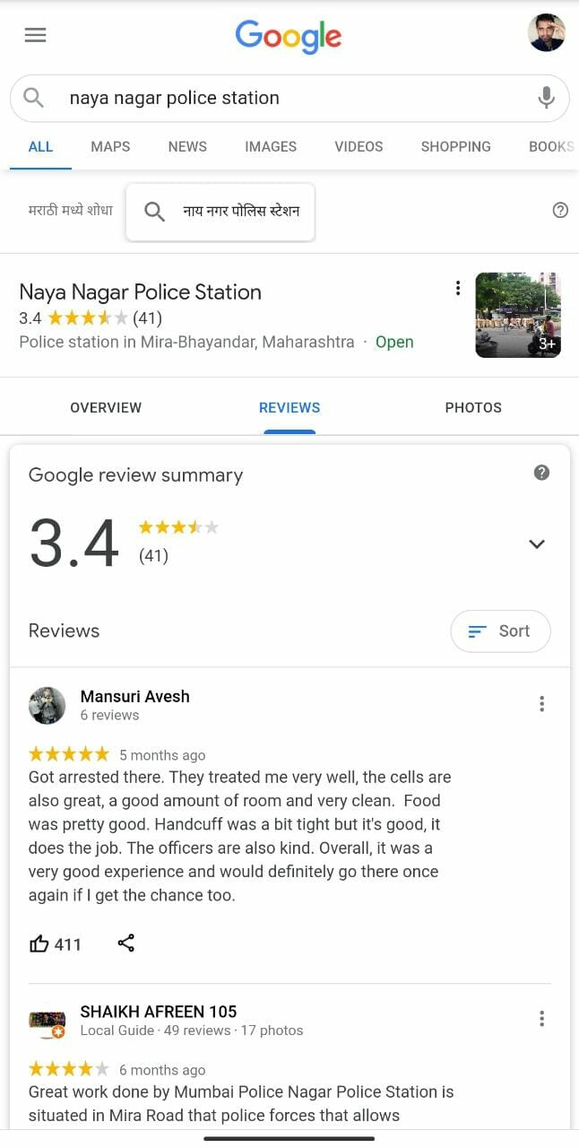 As per reports, some users on the internet have reviewed Mira Bhayander's Naya Nagar Police station, whereby one of the accused is said to be a detainee who was allegedly lodged there and has given the police station five stars. His post stated that he was taken to the station for further investigation. The review has been found on Google, and IPS Santosh Singh tweeted a photo of this review, with a message that read, "The police station is so good that anyone would want to come there a second time."