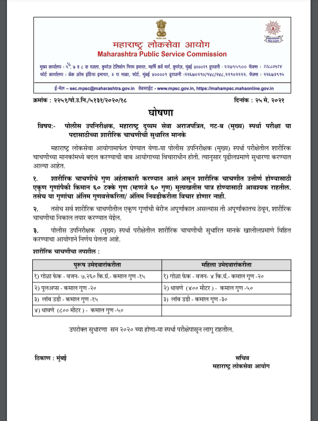 On May 25, the Maharashtra Public Service Commission (MPSC) issued a notification on its revised norms of the eligibility criteria for the physical test in the recruitment process for the post of Sub-Inspector of Police (PSI).