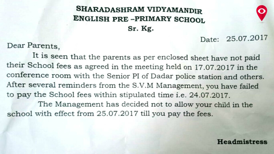 According to the ‘Right to Education Act’, children between 6 and 14 have the right to free and compulsory education and that’s applicable all over India. But Shardashram Vidyamandir International High School in Dadar West, haven’t taken the law seriously.