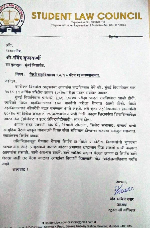 Prior to this, the Law Council had approached Pro-Vice Chancellor Dr. Ravindra Kulkarni who had assured them of forwarding their letters to the authorities for changing the new exam pattern. However, when the students received no reply or change in the curriculum, they filed the online petition.
