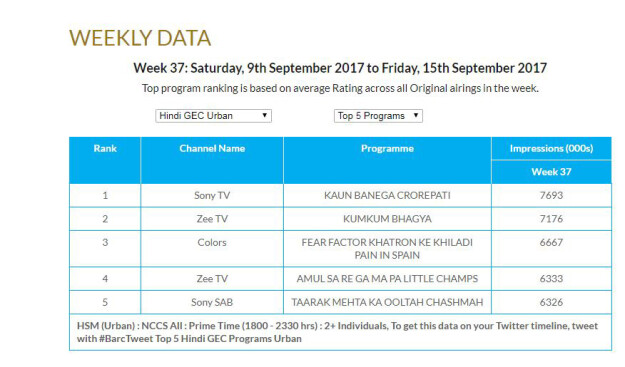 The competition between fiction shows and reality shows to win a place at the top of the TRP chart is getting tougher each week. As per the last week’s BARC report reality shows like Khatro Ke Khiladi 8 and Kaun Banega Crorepati 9 pushed the popular Zee Tv show Kumkum Bhagya on the third place. This week too Sony Entertainment Television’s game show Kaun Banega Crorepati 9 is ranking at number one.