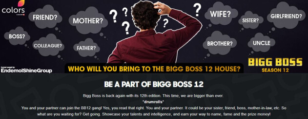 Excitement is in the air, as Bigg Boss 12 is here. After the successful season 11, Bigg Boss season 12 is here for the public, and the audience this time can participate with their partner. The channel and the production house have started the audition process for the same. The message on the audition form reads “Bigg Boss is back again with its 12th edition. This time, we are bigger than ever (drumrolls). You and your partner can join the BB12 gang! Yes, you read that right. You and your partner. It could be your sister, friend, boss, mother-in-law, etc. So what are you waiting for? Get going. Showcase your talents and intelligence, and earn your way to name, fame and the prize money!”