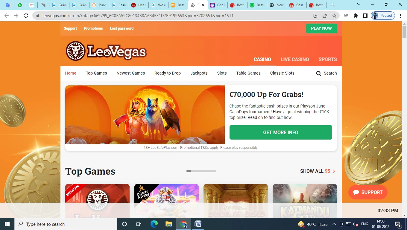 The casino offering at LeoVegas has a lot to offer. They have approximately 500 slot machines and a variety of classic table games. The total number of online casino games in their repertoire is over 2,000, which is nothing to sneeze at.