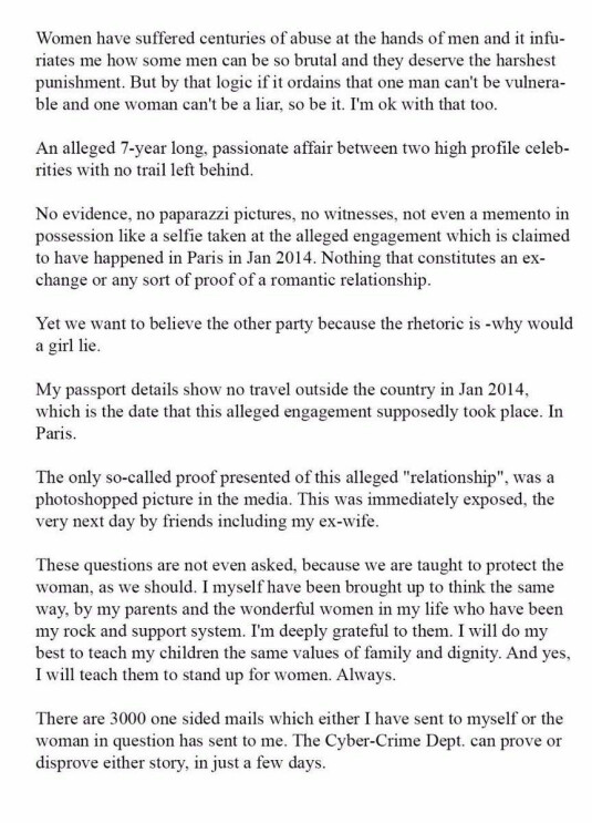 Talking about the emails Hrithik said, The investigation regarding the emails is on.There are 3,000 one-sided emails which either I have sent to myself or the woman in question has sent to me. The Cyber Crime department can prove or disprove either story, in just a few days".