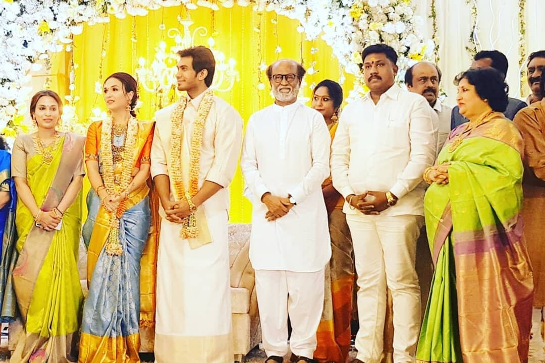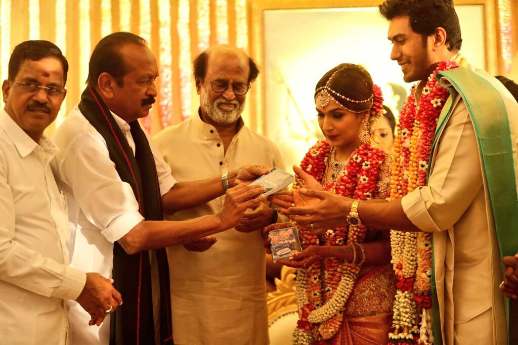 The wedding took place in the presence of the Tamil film fraternity and many prominent personalities of Tamil Nadu. The VIP list of guests included Tamil Nadu Chief Minister E. Palaniswami, actors Kamal Haasan, Mohan Babu, Vishnu Manchu, Prabhu, Vikram Prabhu, Aditi Rao Hydari, Andrea Jeremiah and Manjima Mohan among others. Filmmakers P. Vasu, K.S. Ravikumar, Selvaraghavan and Kasthuri Raja also attended the nuptial.