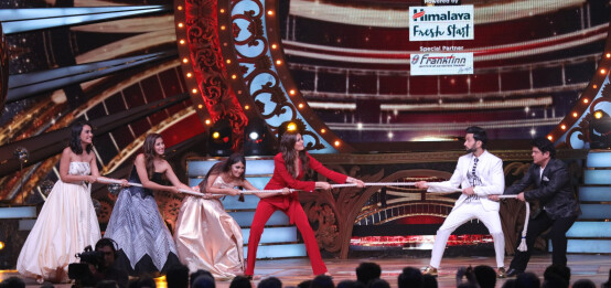 This year, the awards ceremony was nothing short of an entertainment extravaganza with both talent and magnificence coming together. Amidst all the adulation, applause and power-packed performances, the hosts of the ceremony, Nakuul Mehta and Ali Azgar, raised the entertainment quotient and tickled everybody’s funny bones with their witty one-liners and goofy punchlines. During the event, the duo called out to the gorgeous divas of the small screen – Sriti Jha, Karishma Tanna, Sargun Mehta and Surbhi Jyoti and decided to test their physical strength. He challenged them to a tug of war competition and the ladies gracefully accepted the task. The entire activity turned out to be a funny affair as Nakuul accidentally lost his grip on the rope which resulted in Ali falling over the girls! Ouch!!!