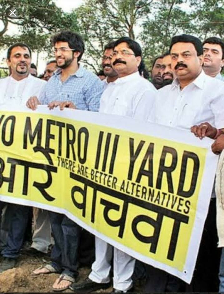 Sharing a picture of Aditya Thackeray protesting against Metro 3 yard at Aarey in 2015 activist Zoru Bathena said,