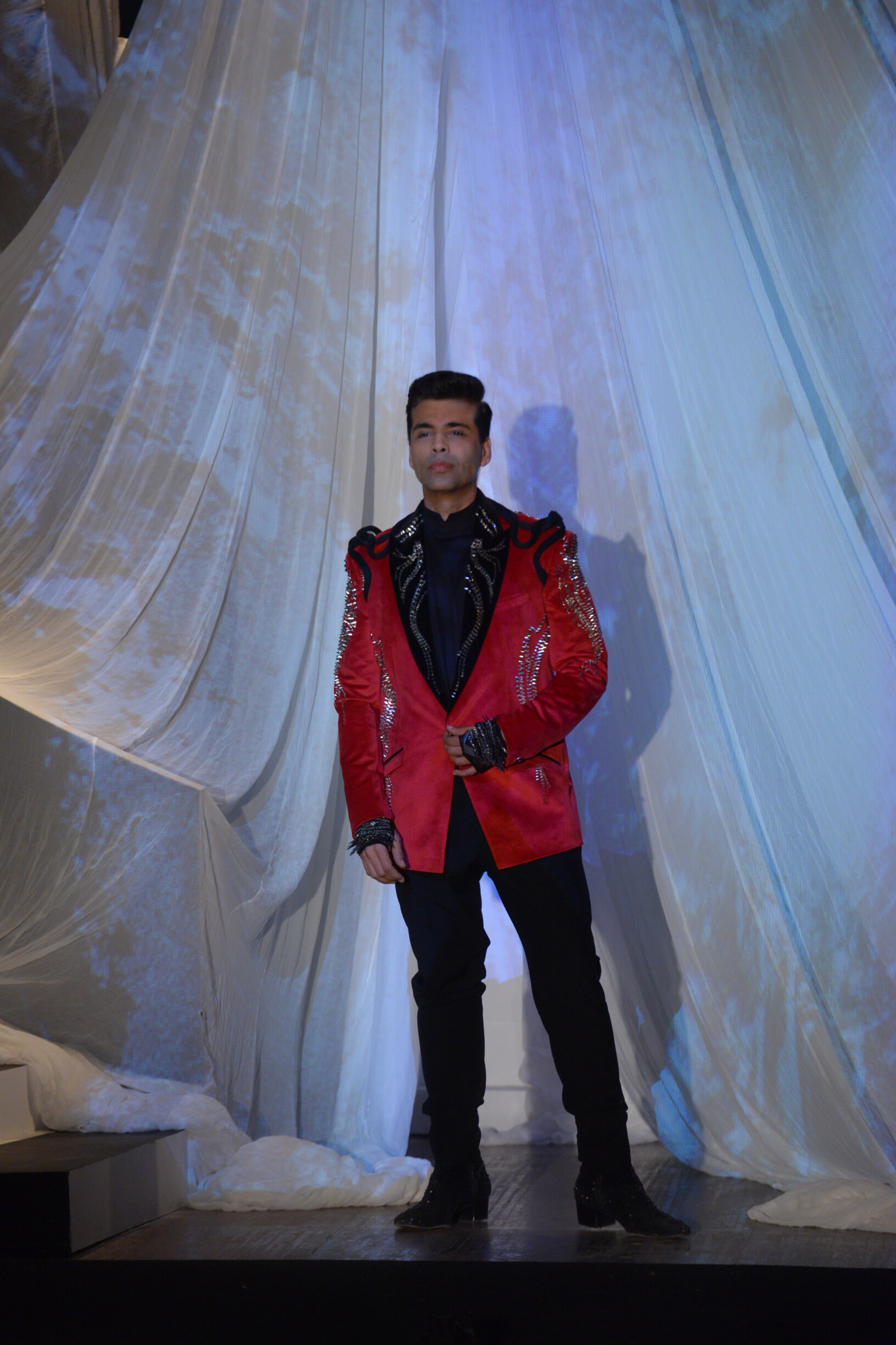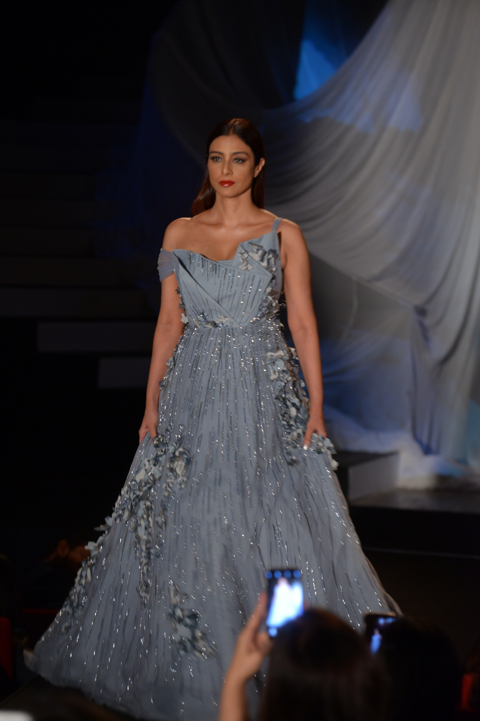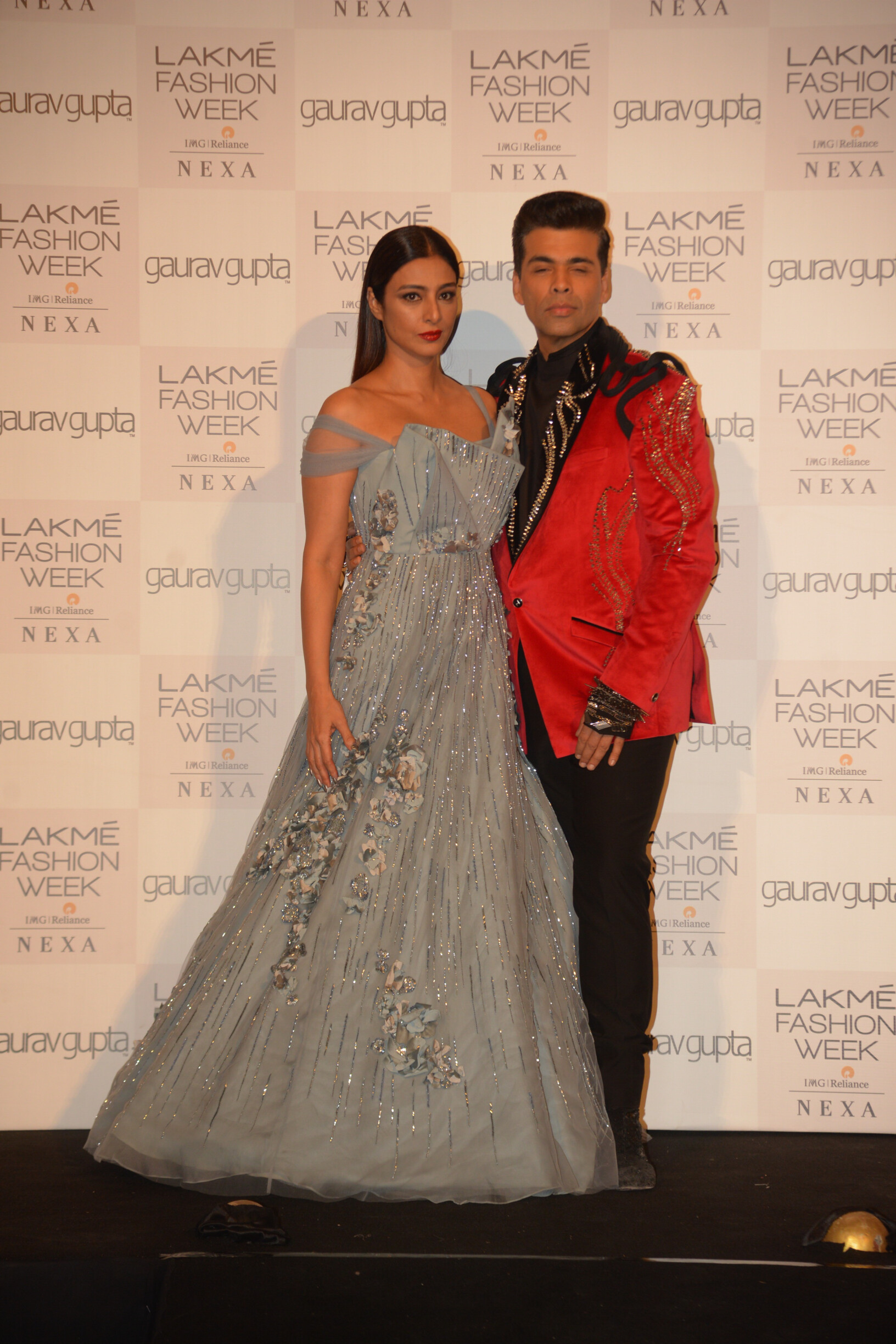 Filmmaker Karan Johar and actress Tabu walked the ramp for Gupta. Karan was donning a red blazer with black and silver shimmer work and was teamed with a black shirt and matching pants. While Tabu was seen in an icy blue off-shoulder gown.