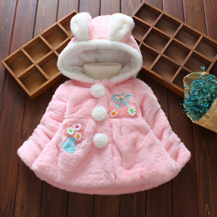Pink always makes little girls look extra cute. This fur coat that comes in a combination of pink and white is one dress your daughter is going to love wearing. The thing that will make your doll look even more adorable is the coat’s hoodie that has bunny ears on top of it.