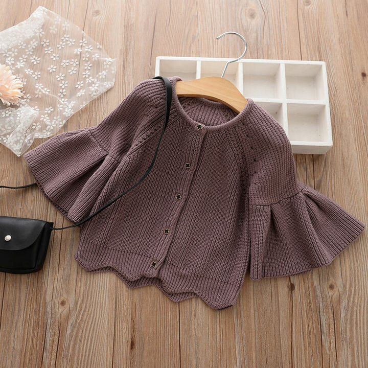 The buttons and the curved lower end make it look like a delicate piece of clothing, but the sweater is warm otherwise. Give your daughter a pretty sling bag to carry along, and your daughter will look like a winsome little lady.