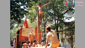 Every year, this mandal propagates one social cause through the shobha yatra. This year, they tried creating awareness about women’s issues, be it child marriage, dowry killings and female infanticide. Apart from holding placards which spoke about respecitng women, they also flaunted photos of successful women who made their mark. Along with this, mallkhamb was also performed.
