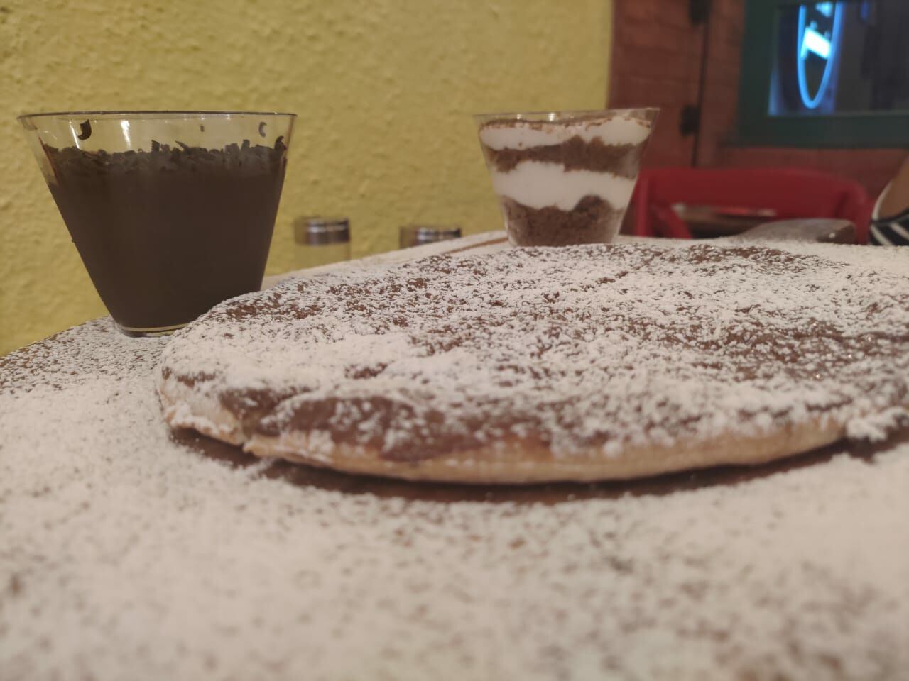 Nutella pizza along with Tiramisu and Chocolate Mousse