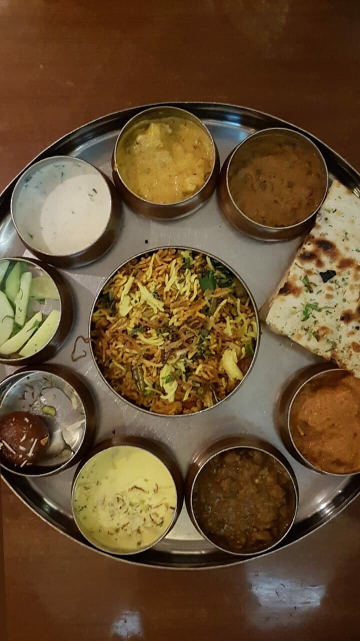 But, if the Punjabi cuisine is not on your favorite list, worry not. The team has a Rajasthani-alternative, where you are served the 'Maharaja' way The thali served is a lavish meal comprising of many courses, starting with the welcome drink - Orange Julius, which is both interesting by taste and quite refreshing. But soon after the drink, begins a list of food items, starting with the chaat, where you are presented with Dahi Bhalla, Mutter Kulche, and Gol Gappa shots. The three items served here are a true reflection to Delhi and the street food served there. The taste is authentic and you would want more of it, but hold on, the starters straight from the tandoor are next on the table. Six variants - Pesto Paneer tikka, Tandoori Mushrooms, Veg Seekh Kebab, Naram Dil Kebab, Hara Bhara Kebab, and Makai Kebab - are served hot along with chutneys and dips. My personal favourite here was the Naram Dil Kebab- it is crispy from the outside and moist and delicate from the inside, making it unique. But all these variants have distinguished flavours and marinations, which you palate would enjoy. By now, you are almost full, but to the amusement, the main course of the Maharaja thali arrives with two sabzi, one variant of dal, one variant of kadi, Biryani, Delhi special lassi, and assorted Indian breads. Well, the thali is fulfilling with the number of dishes and the flavours make the soul happy. This vegetarian feast is rich and packed with taste - served the way it is for the Royals, straight from the kitchen of a palace. Bringing this experience to a worthy end is the dessert, which includes Gulab Jamun and Keshri Kheer.