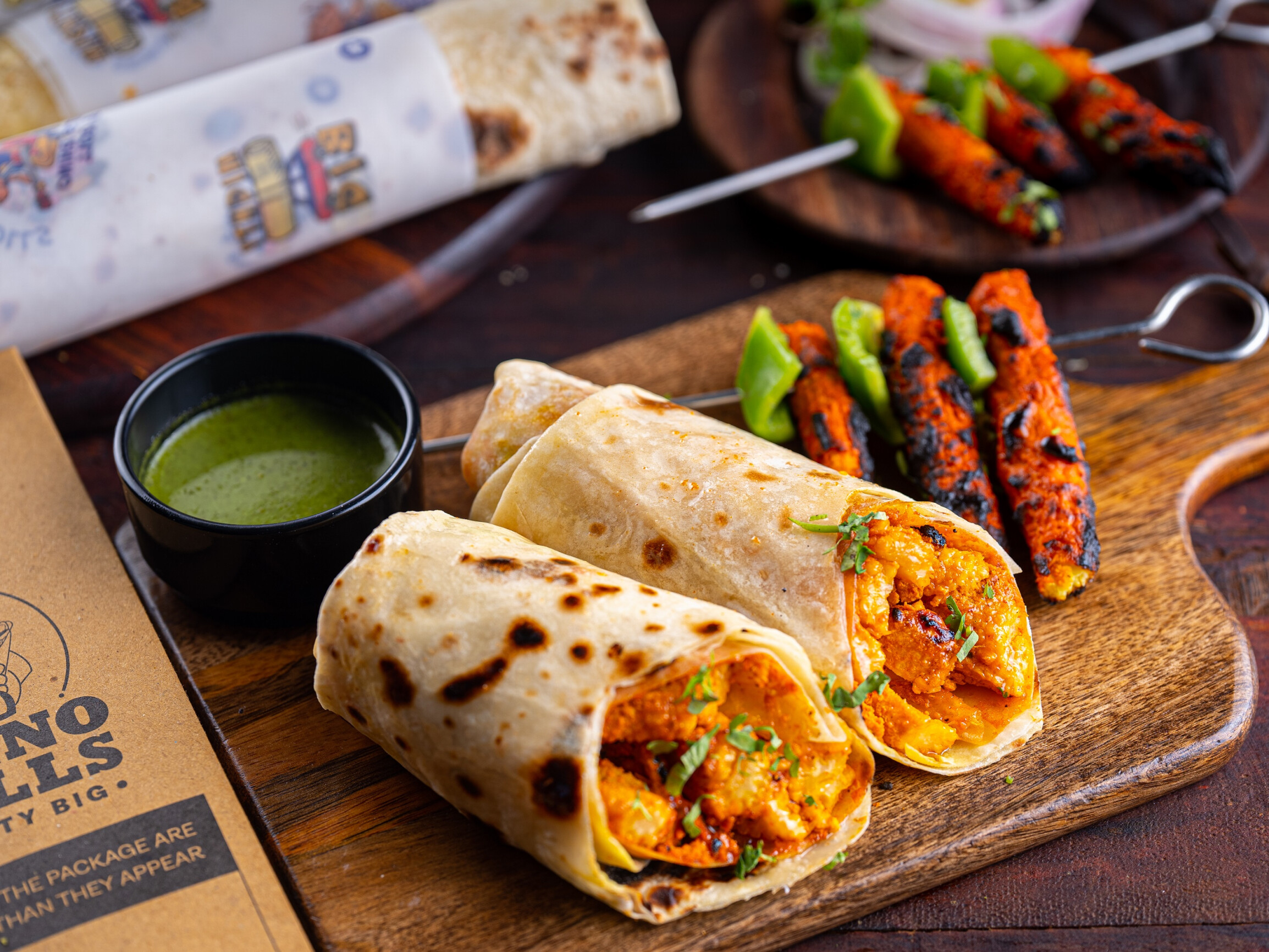 One can begin with their choice of base - Classic, Whole Wheat or Gluten-Free Rumali. If you’re a herbivore like our favourite animal, pick from the classic Paneer Butter Masala and Achari Aloo Tikka Roll or experiment a little with the gourmet option of Posh Shrooms (Mushroom and Truffle Oil). We equally love our carnivores and hence bring a plethora of mouth-watering flavours such Butter Chicken, Korean Chilli Chicken, Mutton Seekh Kebab and many more.