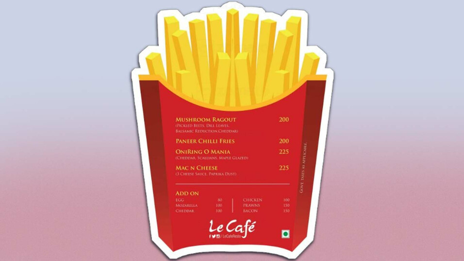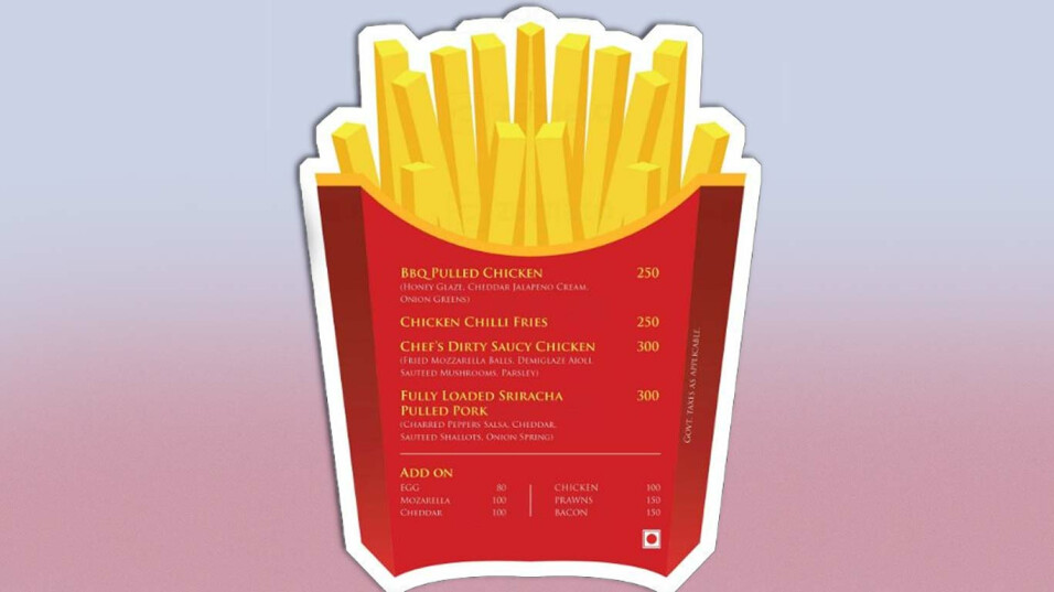 One can expect mac n cheese fries, paneer chilli fries, BBQ pulled chicken fries, chicken chilli, fully loaded sriracha pulled pork and even an 'oniring o mania' fries.