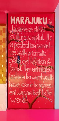 The space is small but has a dynamic ambience with colourful doodles and images of the people sporting quirky outfits in Harajuku. Their wall even has a neon sign board that reads “It’s Harajuku baby!"