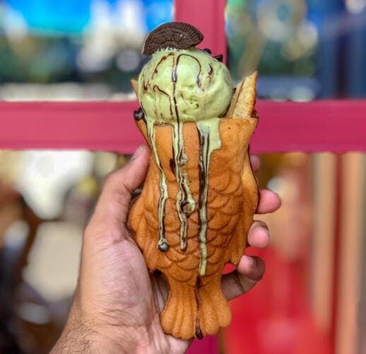 Their quirky menu consists of sweet and savoury crepes, Dorayaki (cute stuffed pancakes), and the Instagram-worthy — Taiyaki, which is the Japanese version of a waffle that comes in the shape of a fish and is stuffed with different components, is also highly recommended.