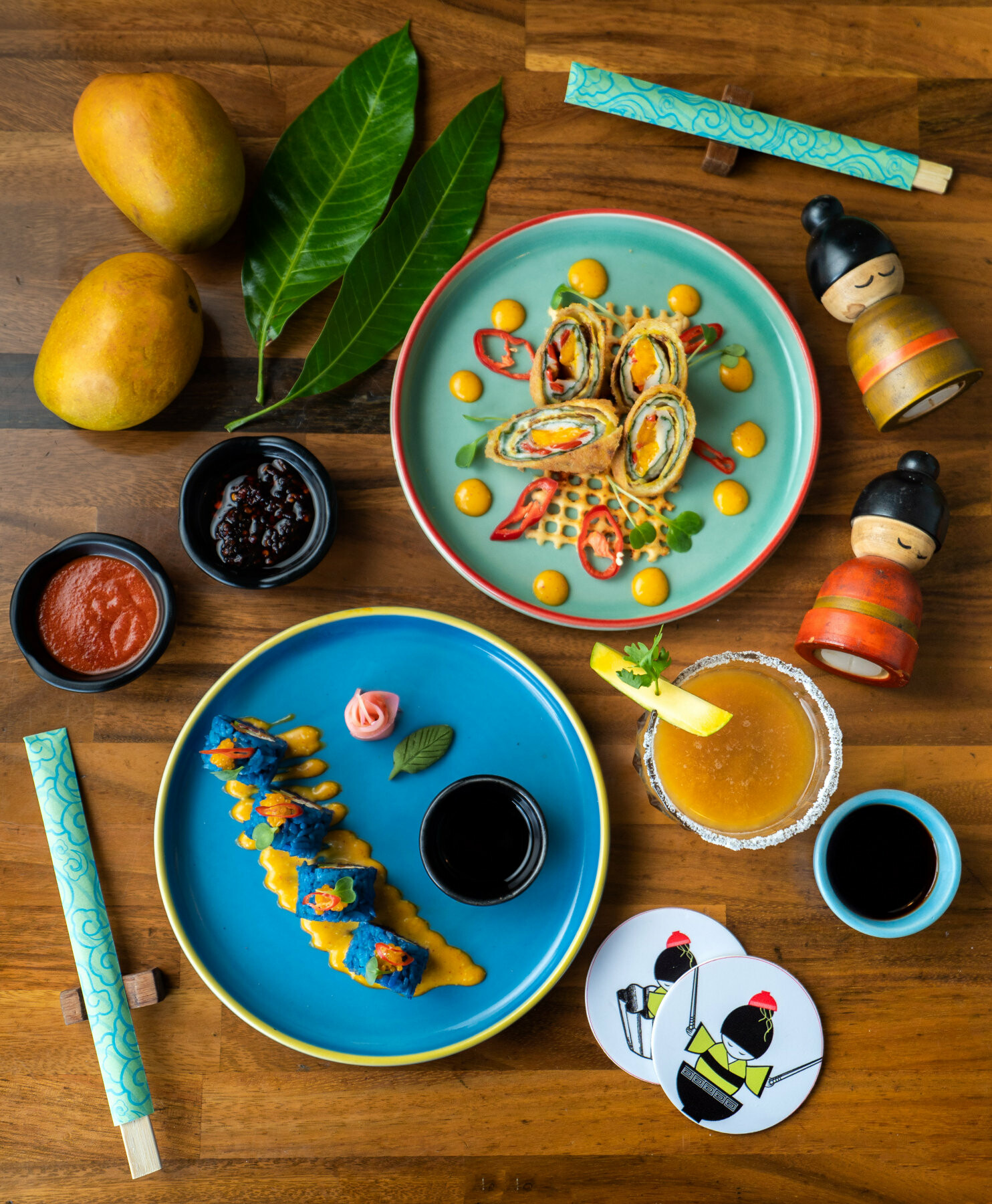 Fresh Mango with Avocado Blue Rice Sushi, Deep Fried Prawn ... _Mango Matinee at The Fatty Bao_Photo By Vinayak Grover