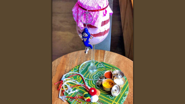 Spread the love with bites from the Red Velvet Thali, DIY Rakhi Thali and Vegan Rakhi Thali. Enjoy Rakshabandhan with the best way to show love- with food! Celebrate the sweetness of your relationship with Red Velvet Thali consisting of Red Velvet cake glass in the small thali and red velvet cake glass with chocolate slab in big thali.
