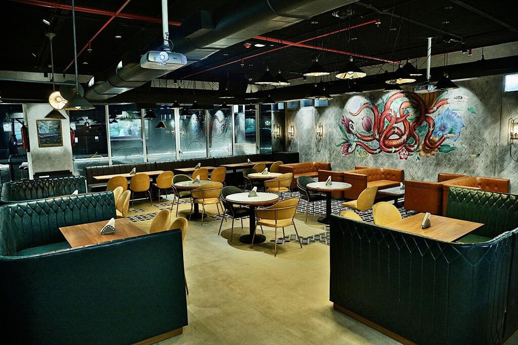 The menu offers satiating portions of Spanish, Modern Indian, Italian, European and Continental dishes, designed by Head Chef Dev Singh Negi, one of the most renowned names in the Indian culinary industry along with chef Vipul Kore. A firm believer of amalgamating local and global palates, some of his signature dishes at Viper include Tango Saar, Makka Arancini, Naga Wings, Sarson da Swag, Viper's Sizzler, Pesce Express and more.