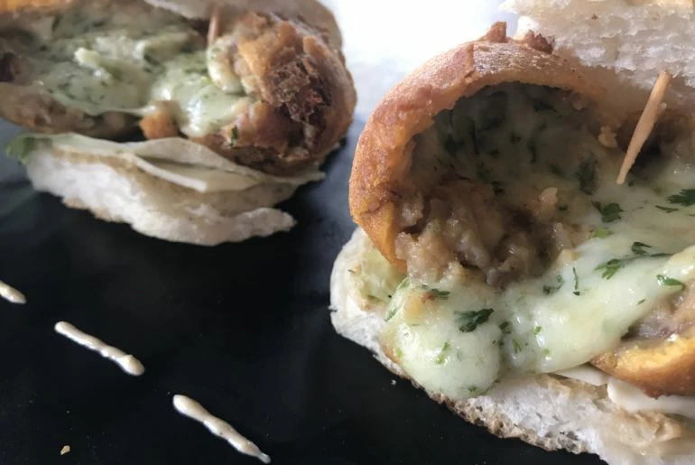 Exotic varieties like Mc Aloo Tikki are gaining popularity in India, thus, seeing this, a fusion of both a burger and a vada pav has become available. One of them is the Cheese Burst Vadapav. Since cheese is liked by many, it was added to the traditional dish. in a joint in Borivali. The filling is made of potatoes, beans, jalapenos, spicy chips and cheese, and is coated with gram flour. The bread is served alongside lettuce, tomato, mayonnaise and a cheese slice. In a way, you can call it an Indian burger.
