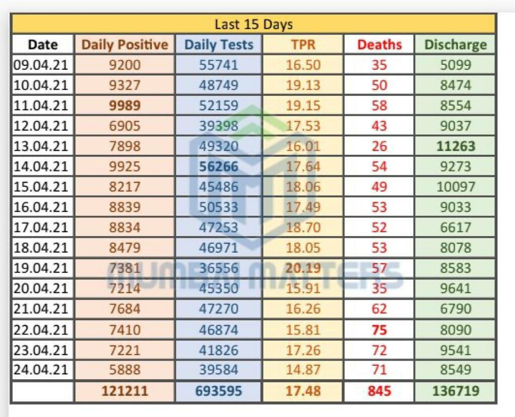 However, the civic body has maintained that the situation will have to be monitored until April 30, before claiming that the decline of the second wave in the city has started.