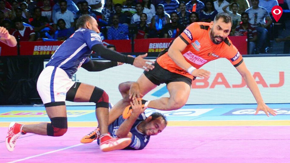 Delhi skipper Meeraj Sheykh, Mumbai captain Anup Kumar and Shabeer, all got seven points each. Delhi made a better start to the game but U Mumba stabilised later.
