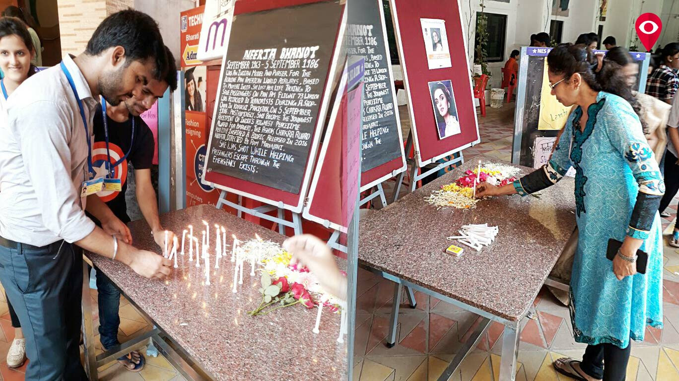 A candle vigil was organised in which the rest of the college participated besides the Principal and Vice Principal who lit candles and encouraged the students. Following one such screening of the movie Neerja, the members were inspired to hold a vigil as a mark of respect to her.