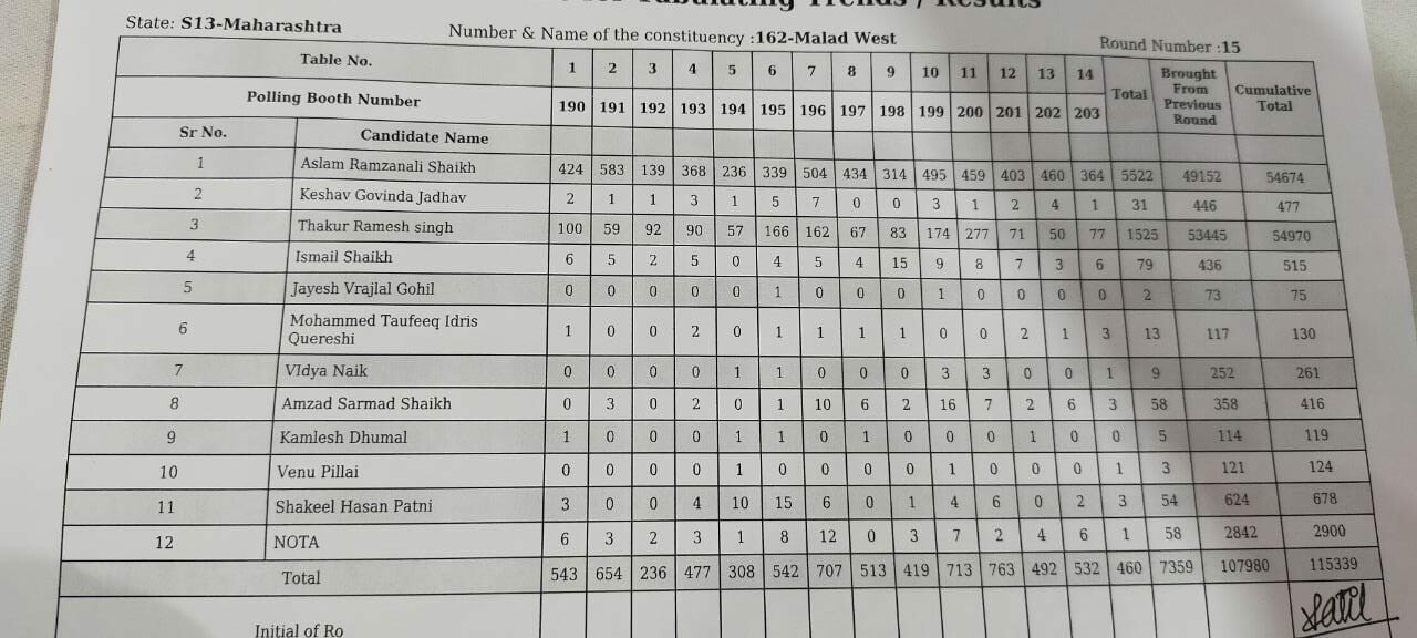 | MALAD (W) | RAMESH SINGH THAKUR (BJP) 0↑ ↓ | ASLAM SHAIKH (INC) 0↑ ↓ | OTHERS 0↑ ↓ |