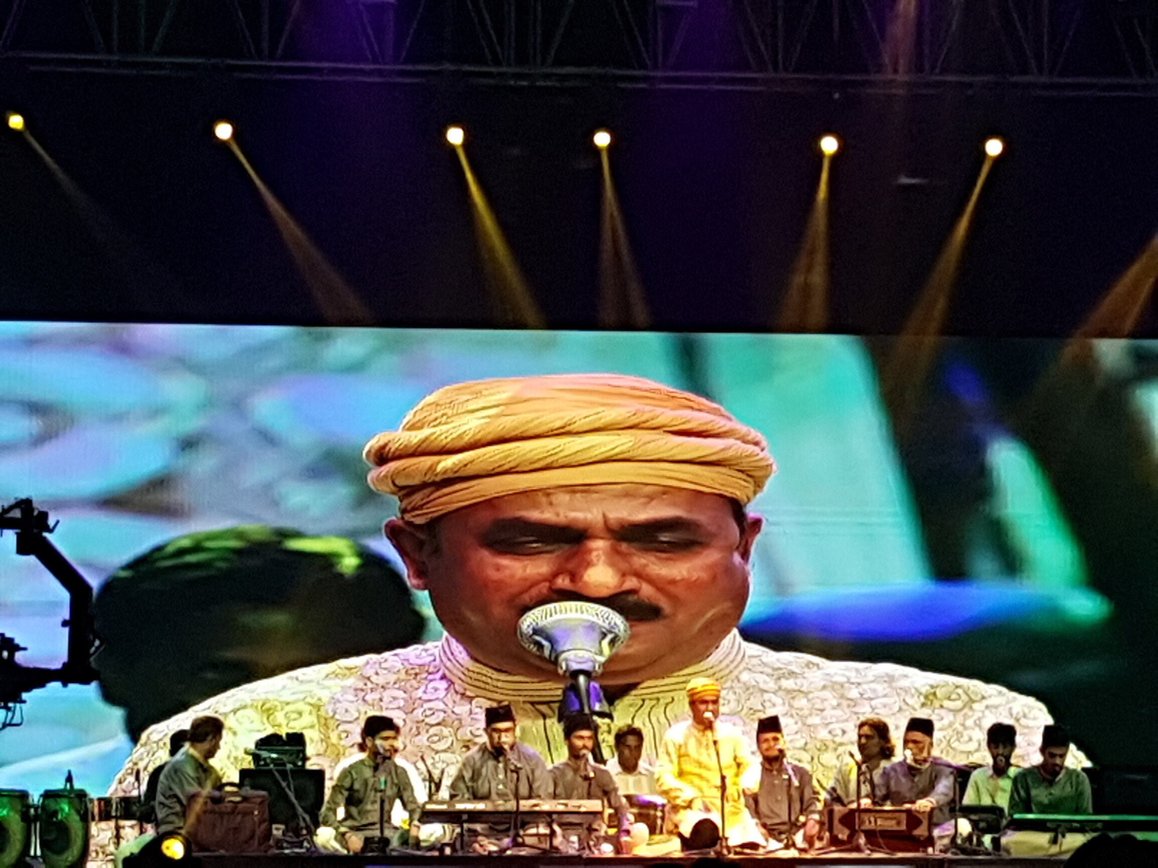 Munnawar Masoom sahab presented his tribute in the form of Qawwali. His performance began with the renditions of legendary Nusrat Fateh Ali Khan sahab. He started the evening with Ali Maula which added the divine touch to the evening. What followed was an amazing rendition of a ghazal and qawwali together, sharing the singers thought about enemies and the friendship he once had with them. The qawwals presented a show which left the audience longing for more. They sung 4 songs, and the audience wanted more of them.