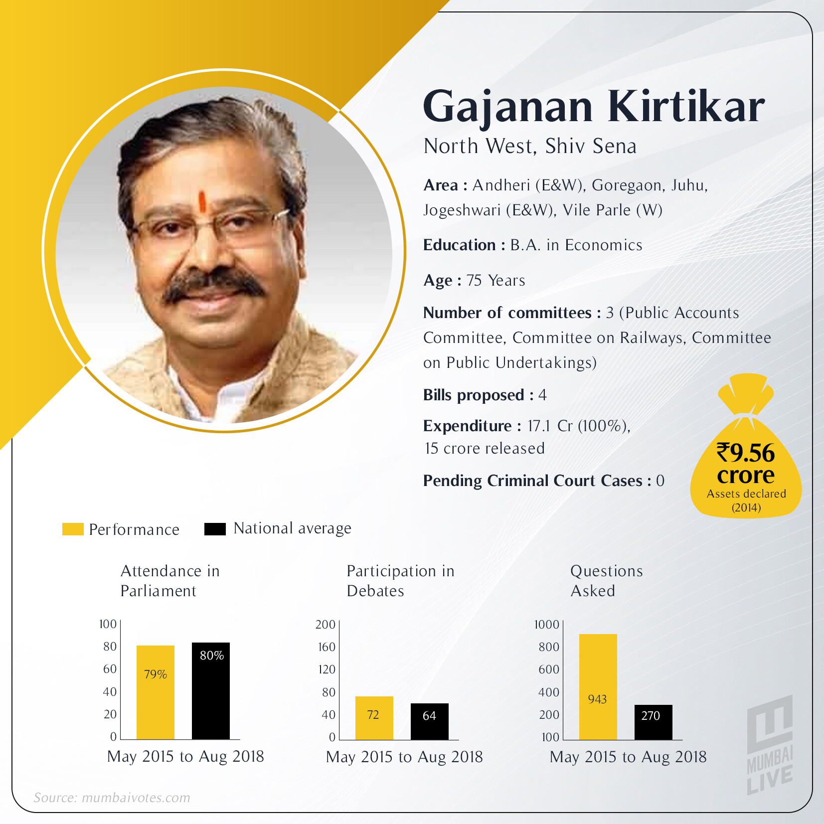 Shiv Sena leader Gajanan Kirtikar is well known and a veteran leader of the party who had good relations with Shiv Sena founder Bal Thackeray. In the 2014 national election, Kirtikar won the seat under the influence of Modi wave and defeated late Congress leader Gurudas Kamat.