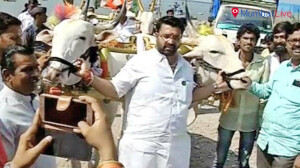 As he was not permitted to bring in bullock cart inside the premises, he staged a symbolic protest outside Manora guest house. “If Tamil Nadu government can legalize Jallikattu, then CM should also take a stand in legalizing bullock cart racing in Maharashtra,” said Mahesh Landge.