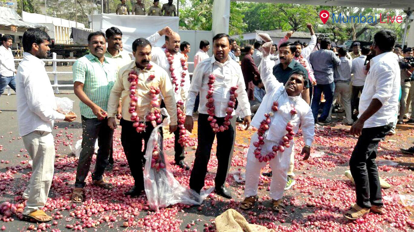 The Sanghatana was protesting outside the Vidhan Bhavan this morning before the budget session entered its second day. Police then arrested the protesters for creating a ruckus and throwing onions on the car of state agriculture minister Sadabhau Khot. “The protest is for farmers so that they get their profit,” said